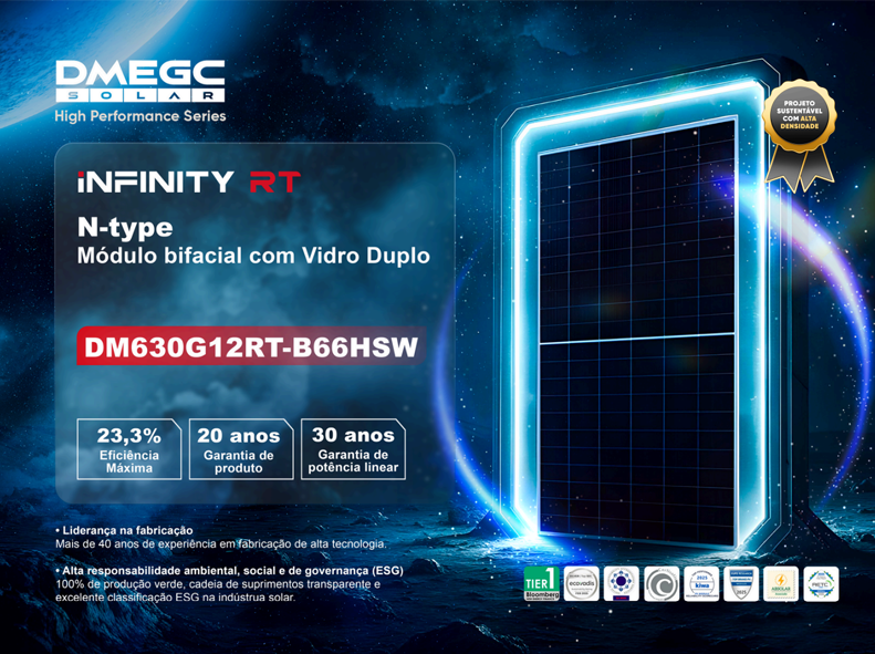 Módulo bifacial N-type (630W) linha DM630G12RT-B66HSW